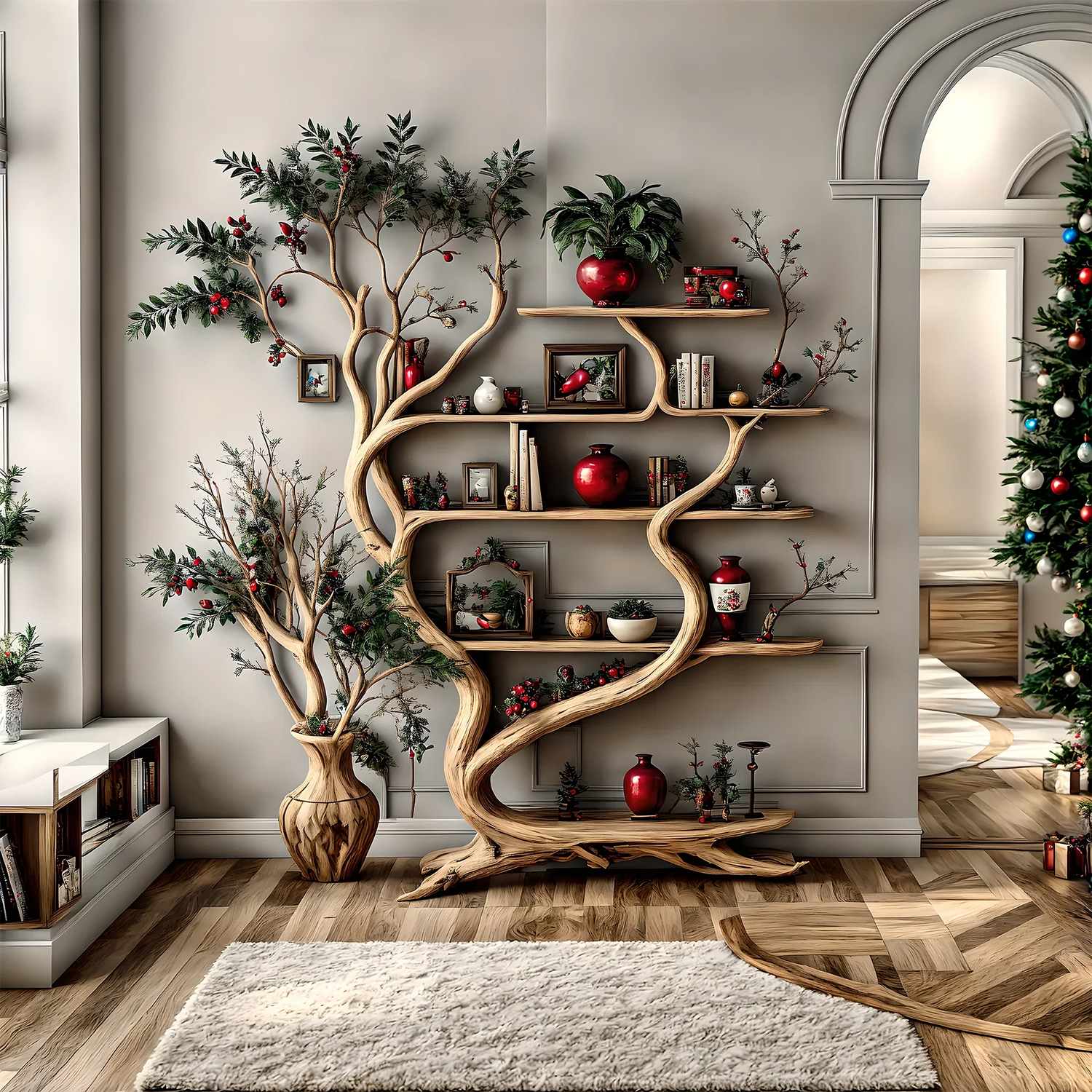 Rustic Tree Branch Decorative shelf in natural tree shape, solid wood, living room decoration